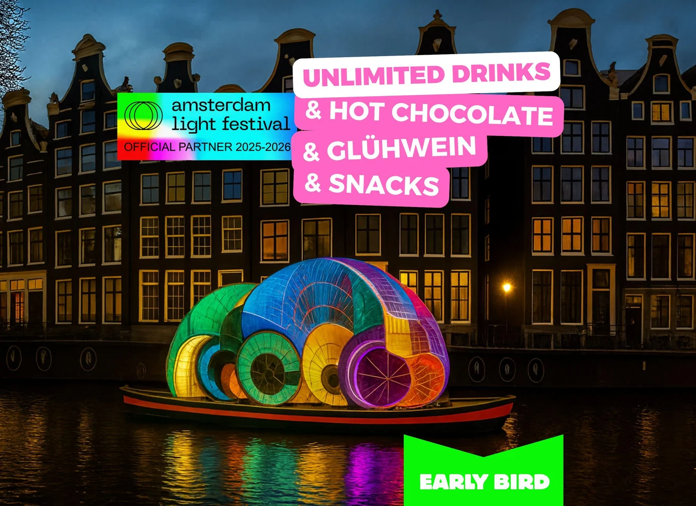 Tauche ein in das magische Wunderland Amsterdam, während es sein Wintergewand anzieht. Bewundere die wunderschön beleuchteten Gebäude, erfahre mehr über die Geschichten der beleuchteten Kunstwerke beim Amsterdam Light Festival und lass dich von den atemberaubenden Brücken bei Nacht beeindrucken. Genieße einen leckeren Drink mit einem kleinen Snack, um die Fahrt auf dem gemütlichen Boot noch angenehmer zu gestalten.