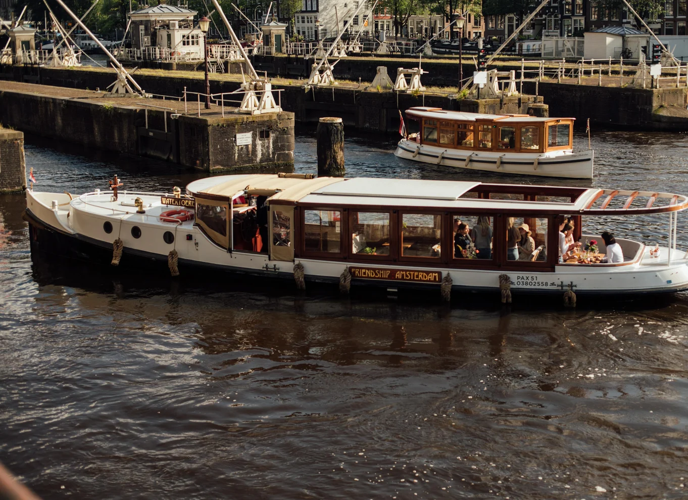 Deleita tus sentidos embarcándote en nuestro clásico recorrido en barco por los pintorescos canales de Ámsterdam. Aunque el encanto de la ciudad es innegable, es la excepcional selección de bebidas lo que realmente diferencia nuestro recorrido. Independientemente del tiempo que haga, nuestro barco se adapta para proporcionarte una experiencia cómoda y agradable, permitiéndote sumergirte por completo en el encantador entorno.