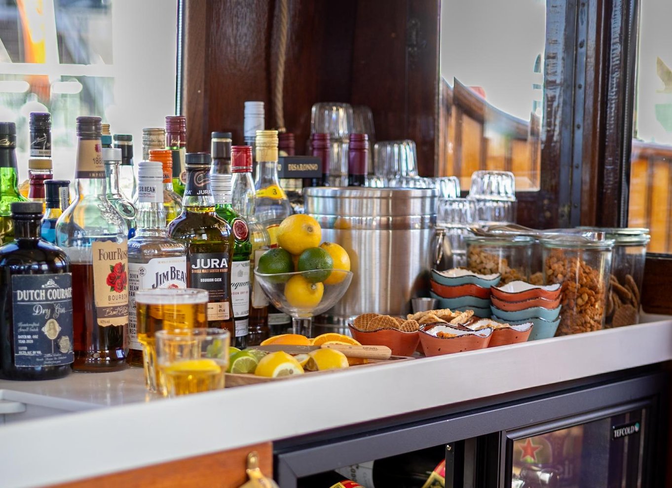 - Votre capitaine est né et a grandi à Amsterdam Bar complet avec alcools, bières, vins, sodas et café/thé de grande qualité Toilettes/WC à bord Places assises à l'intérieur et à l'extérieur 12 personnes maximum