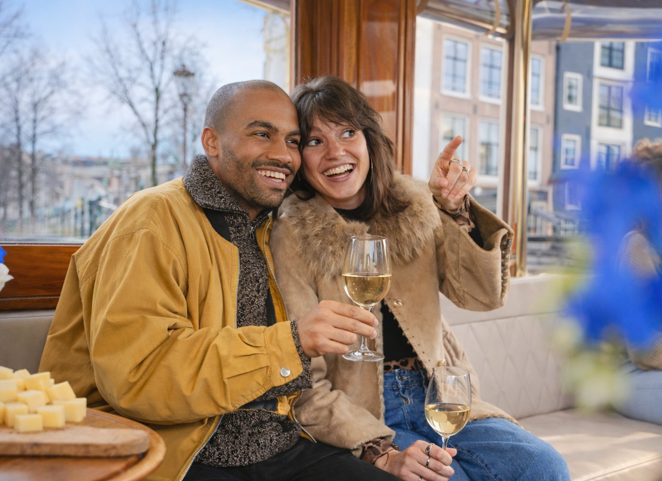 Ha szeretnéd, választhatod a Sajt és bor opciót is a hajóutadhoz. Ez két helyi holland sajtot jelent, amit igazi groningeni mustárral szolgálnak fel, plusz korlátlan italt, beleértve a bort, a sört és az üdítőket, miközben a csatornákon hajózol.